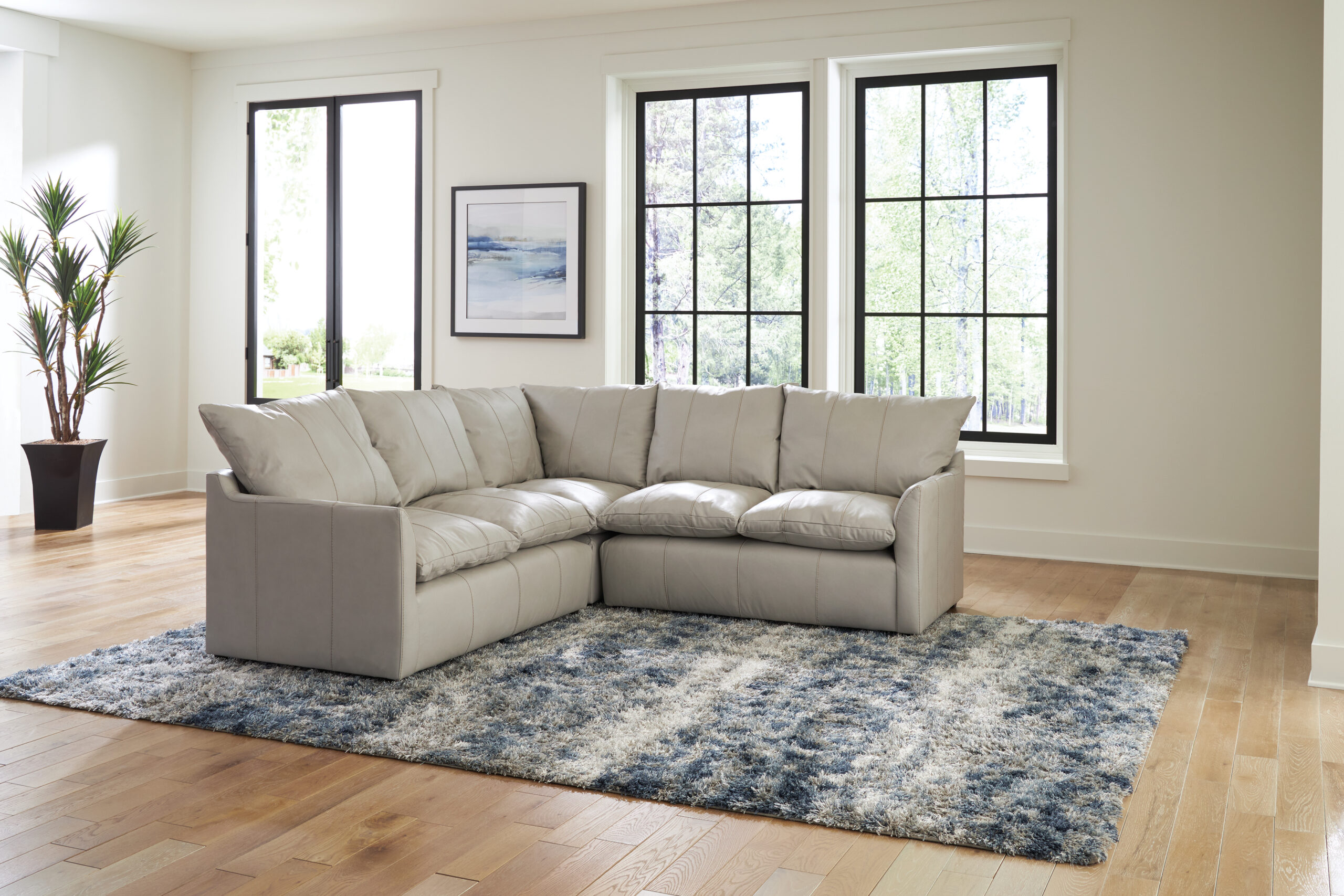 Relax in contemporary luxury with the Ciampino Sectional by Jackson/Catnapper. Upholstered in soft top-grain Italian leather with leather-match accents, this two-piece L-shaped sectional features sleek shark-fin arms and extra-deep, “Carefree Casual” seats with Comfort Coil seating infused with Comfor‑Gel. Built on Steel Tech framing, it delivers both comfort and durability for modern living spaces.
