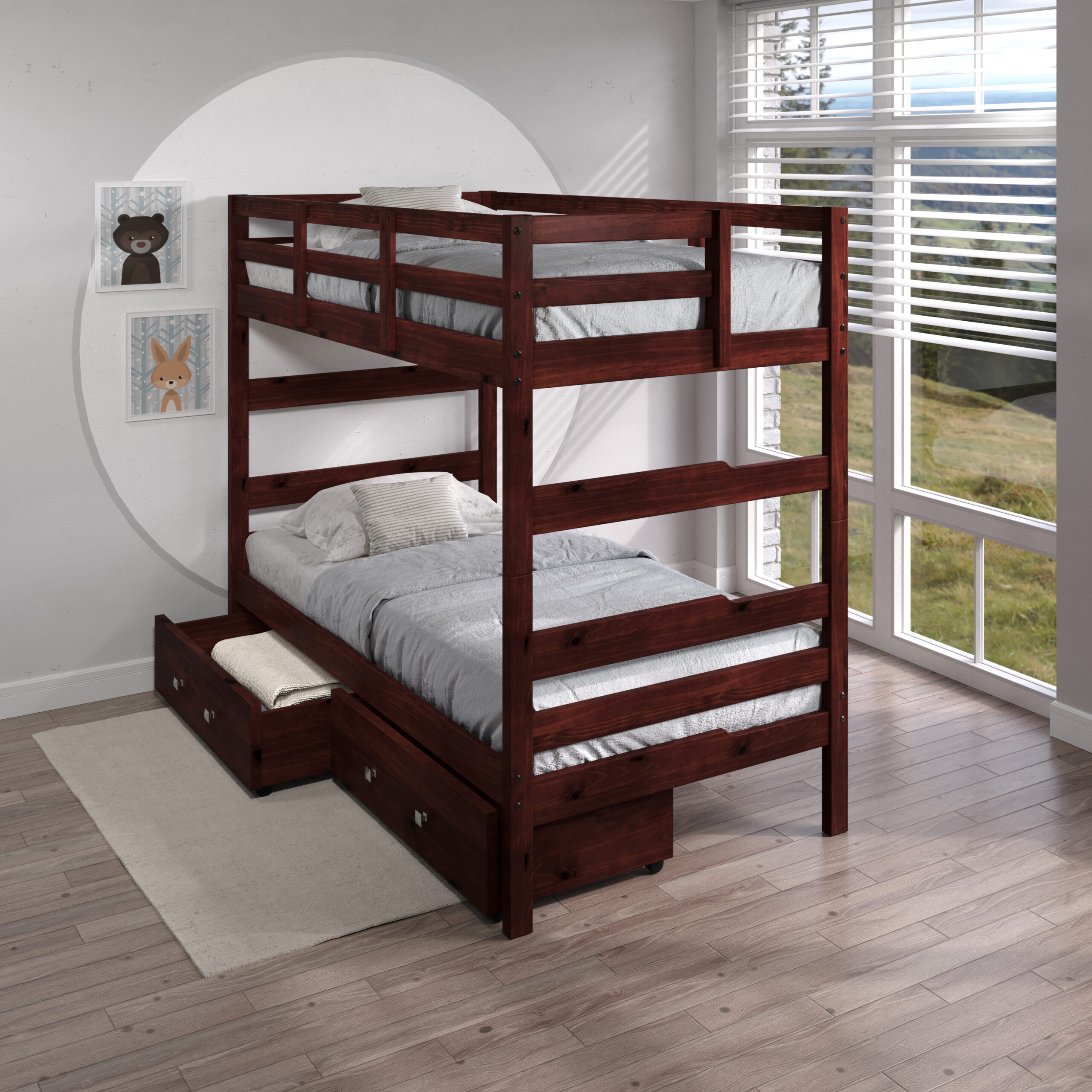 The 2305-TTCP Promo Shaker Bunk Bed from Donco Trading Co. combines timeless design with practical functionality for youth bedrooms. Its twin-over-twin configuration makes the most of vertical space while maintaining a clean, structured look. The sturdy wood construction ensures reliable support for everyday use, making it a smart solution for shared bedrooms or accommodating overnight guests. With its simple shaker detailing and durable build, this bunk bed delivers both style and long-lasting performance. Drawers sold separately.