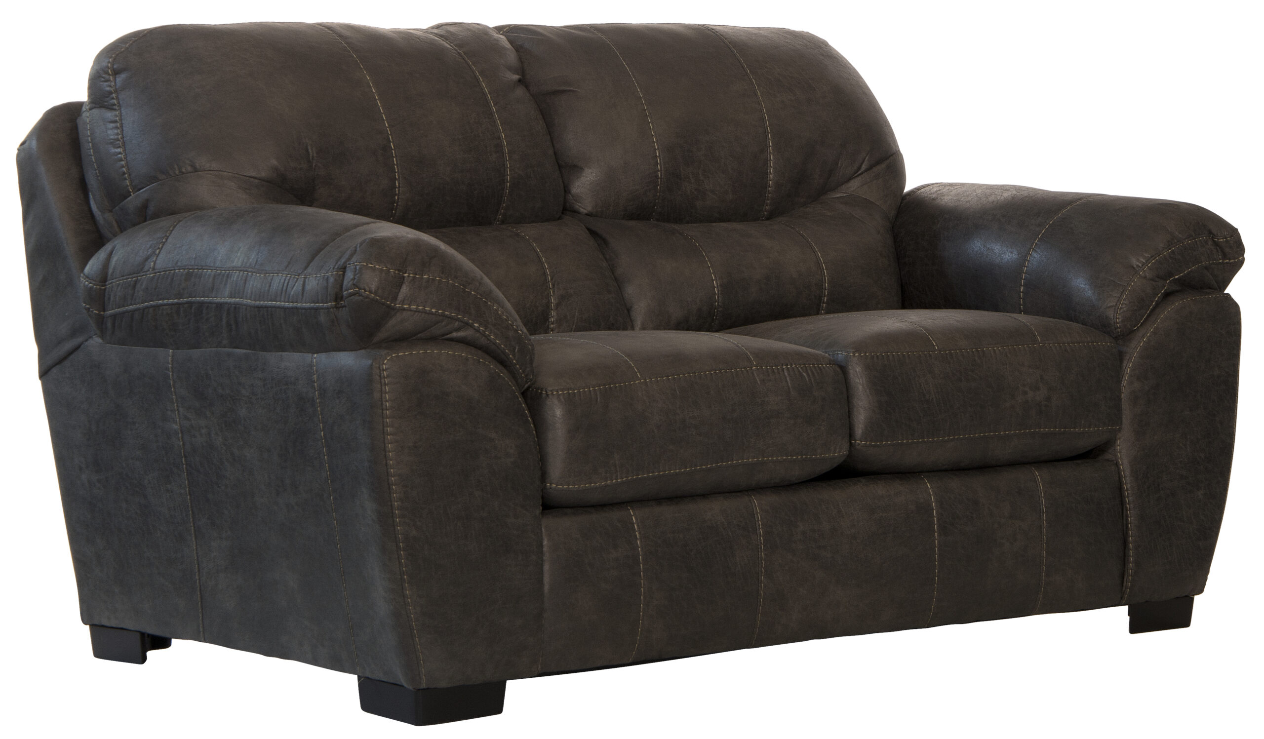 Elevate your living room with the elegance of the Grant Stationary Sofa & Loveseat Set. Upholstered in luxurious bonded leather with a Nu-Buck feel, this transitional set features pillow arms, pub-style back pillows, contrast luggage stitching, and wooden block feet. Built with Comfort Coil seating infused with Comfor-Gel, it offers a stylish, comfortable, and enduring experience perfect for family living.